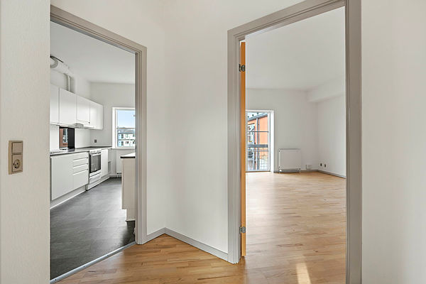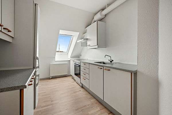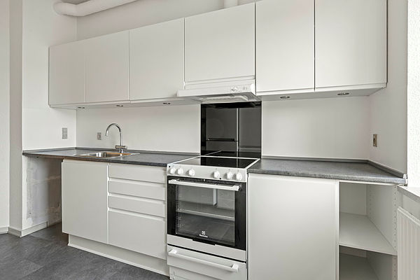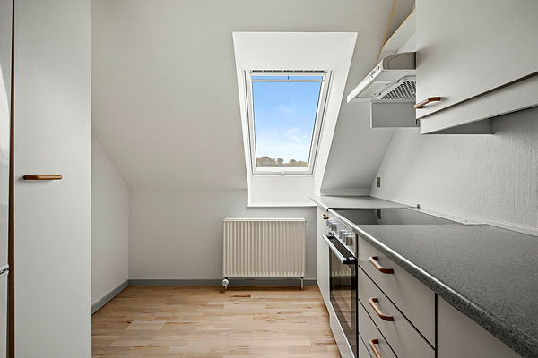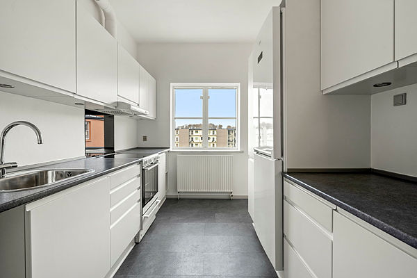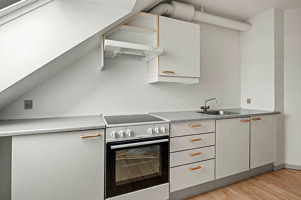 Boligerne er udstyret med lyse køkkener med komfur, emhætte og køle-/fryseskab.